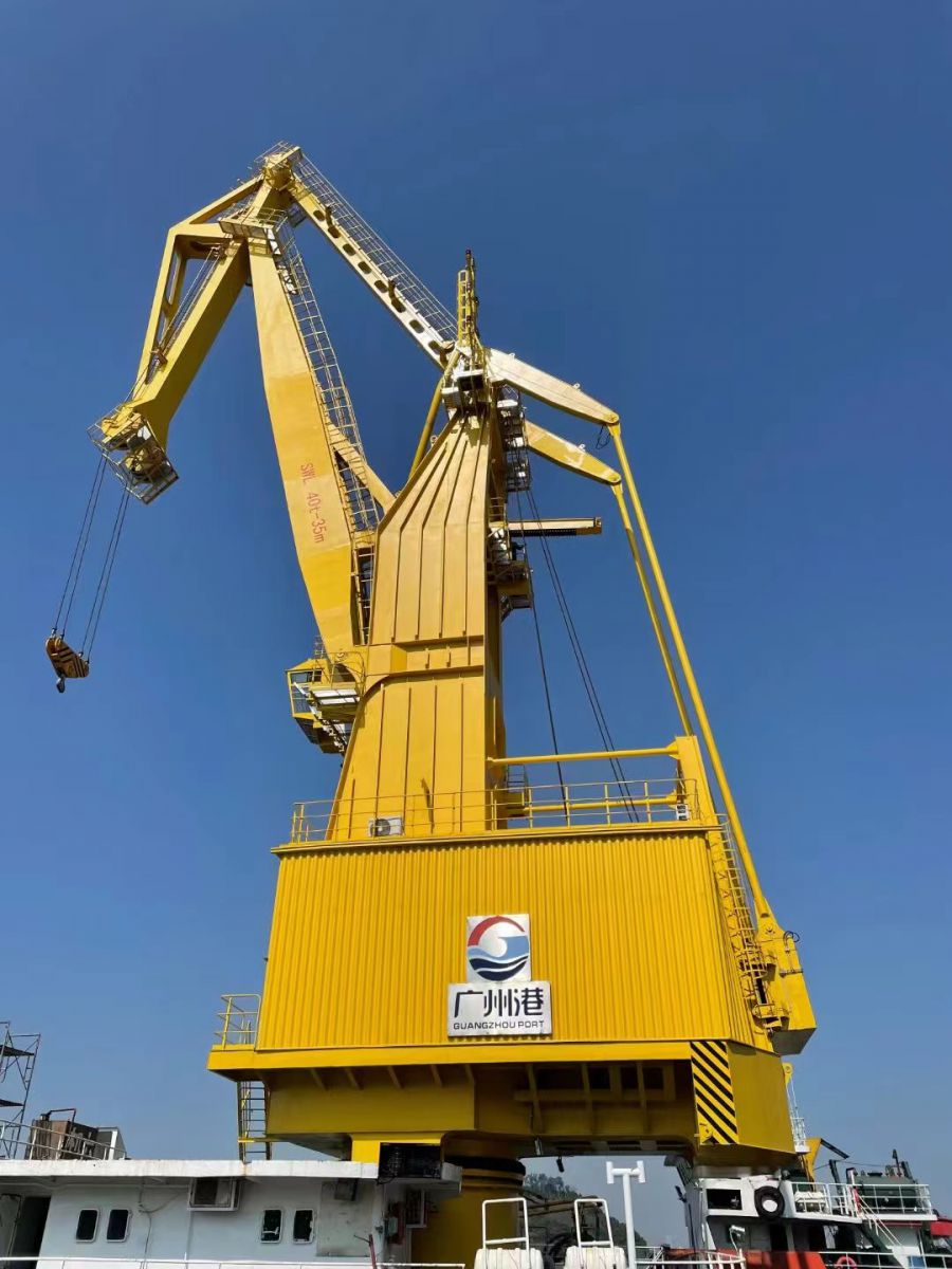 四連桿浮式起重機為散貨裝卸設(shè)備??晒┖8刍蚝痈鄣?.5萬噸級碼頭用25噸效率抓斗進(jìn)行散料裝卸作業(yè),經(jīng)過換裝25噸吊鉤,也可進(jìn)行雜貨吊裝作業(yè)。