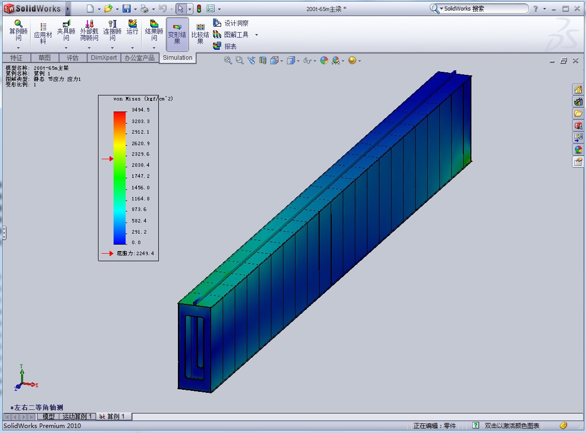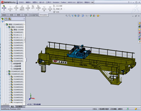 AutoCAD、SolidWarks等先進(jìn)軟件進(jìn)行設(shè)計(jì),對(duì)主要受力構(gòu)件和零部件都采用有限元分析軟件Simulaticn進(jìn)行有限元分析和優(yōu)化設(shè)計(jì),大大縮短